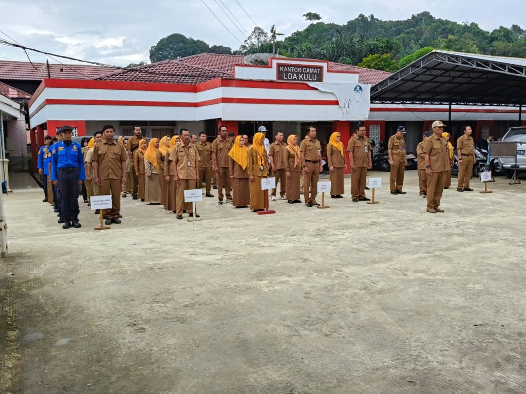 Loa Kulu – Pemerintah Kecamatan Loa Kulu melaksanakan apel pagi rutin pada Senin pagi di halaman Kantor Camat Loa Kulu. Apel pagi ini diikuti oleh seluruh pegawai dan staf Kecamatan Loa Kulu sebagai bagian dari upaya penegakan disiplin, pembinaan aparatur, serta koordinasi pelaksanaan tugas pemerintahan dan pelayanan kepada masyarakat.