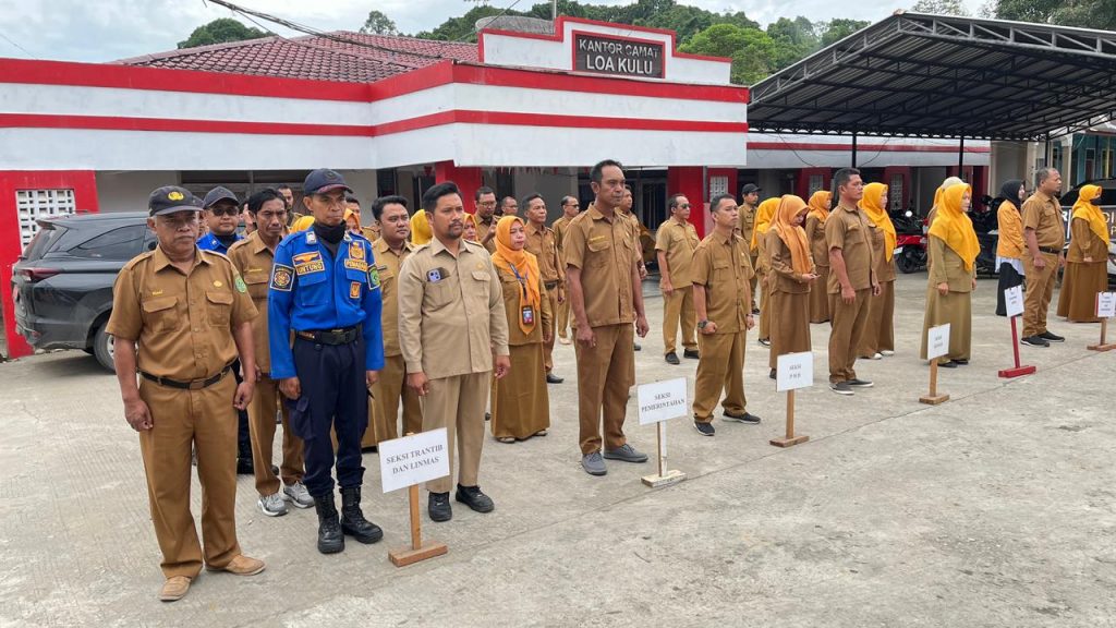 Kegiatan apel yang diikuti oleh seluruh aparatur kecamatan ini berlangsung dengan tertib dan khidmat, sebagai bentuk komitmen dalam meningkatkan disiplin serta kinerja pegawai di lingkungan Kantor Camat Loa Kulu.