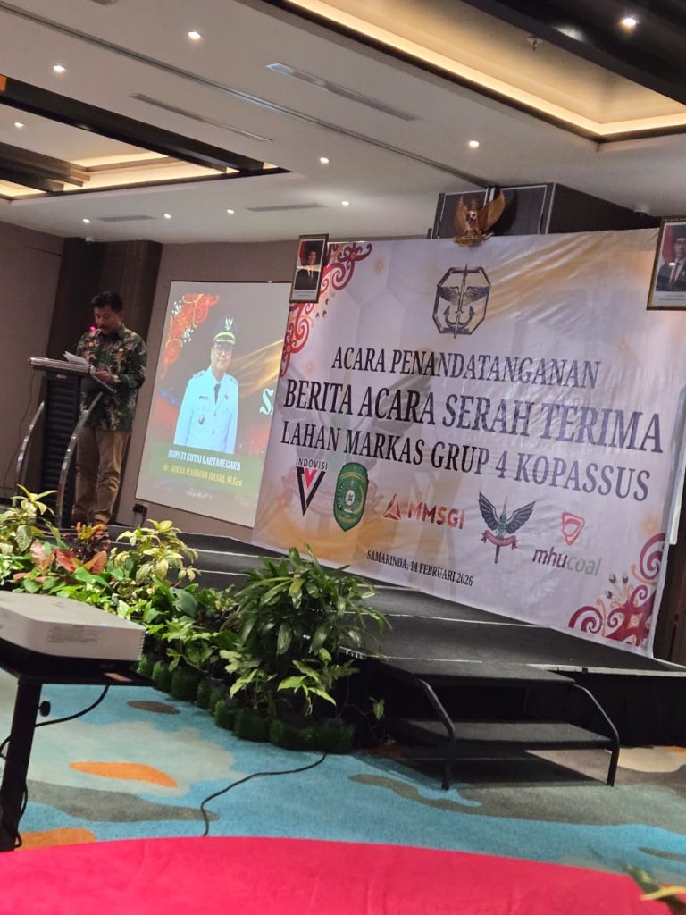 Loa Kulu – Camat Loa Kulu menghadiri kegiatan penandatanganan berita acara serah terima lahan untuk pembangunan Markas Group 4 Komando Pasukan Khusus (Kopassus), yang dilaksanakan pada 14 Febuati 2026