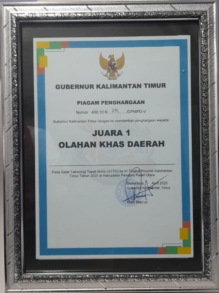 Loa Kulu — Kabar membanggakan datang dari Desa Lung Anai, Kecamatan Loa Kulu, Kabupaten Kutai Kartanegara. Desa ini berhasil meraih Juara 1 dalam ajang Teknologi Tepat Guna (TTG) Provinsi Kalimantan Timur ke-XI Tahun 2025 untuk kategori Olahan Khas Daerah.
