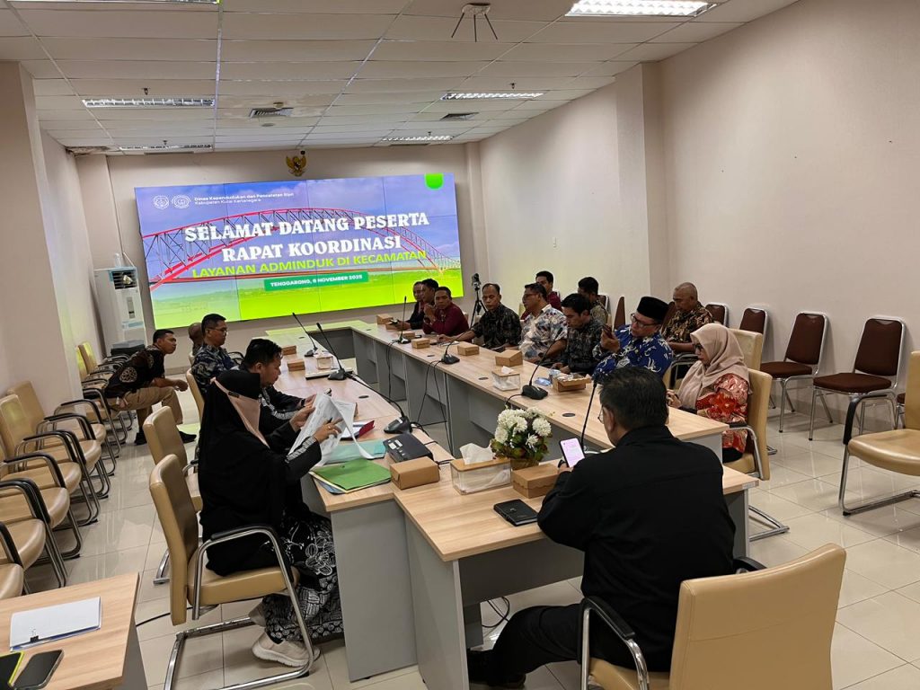 Tenggarong – Dalam rangka meningkatkan koordinasi dan optimalisasi pelayanan administrasi kependudukan di tingkat kecamatan, Kasi Pelayanan Umum (Pelum) Kecamatan Loa Kulu menghadiri Rapat Koordinasi (Rakor) Penyelenggaraan Administrasi Kependudukan yang diselenggarakan oleh Dinas Kependudukan dan Pencatatan Sipil (Disdukcapil) Kabupaten Kutai Kartanegara. Kegiatan ini berlangsung pada Rabu (5/11/2025) di Ruang Rapat Disdukcapil Kukar, Tenggarong.