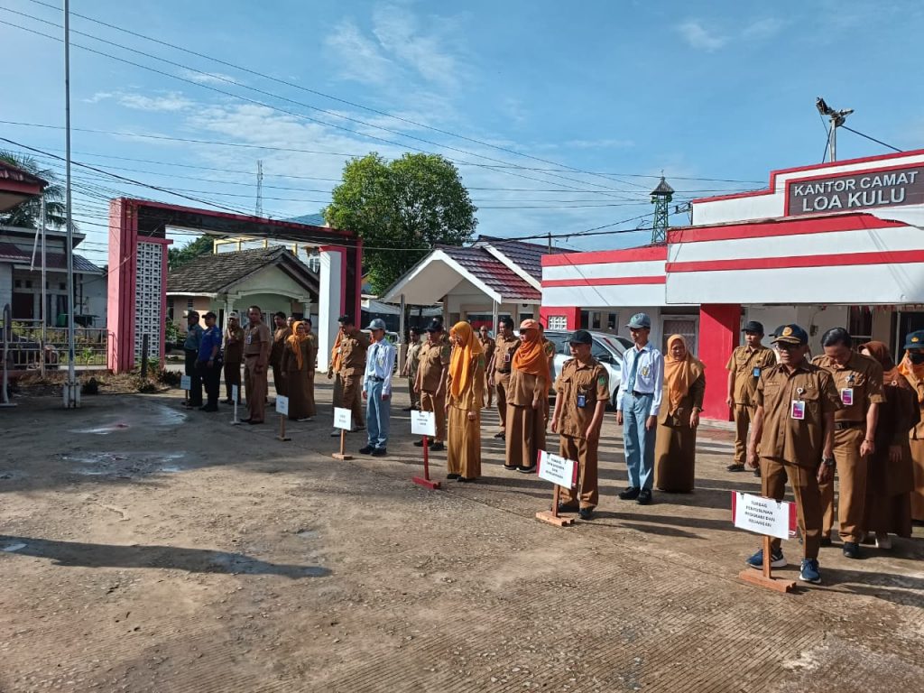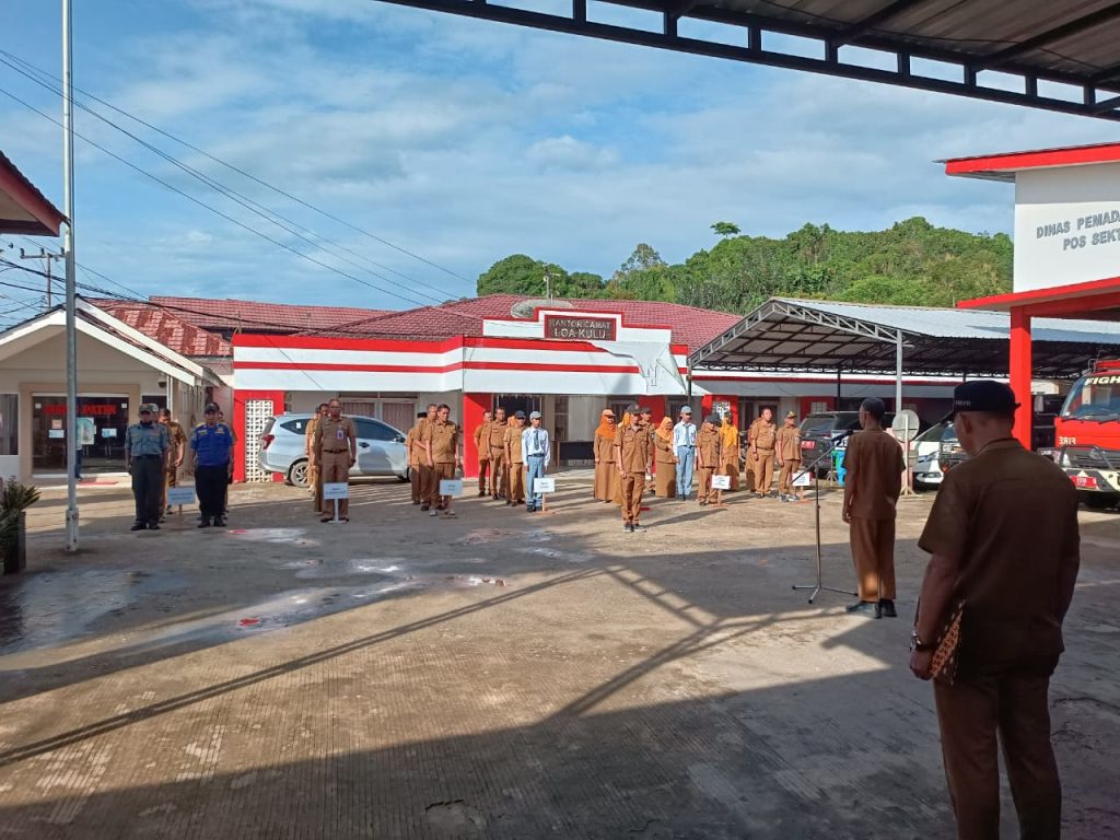 Loa Kulu — Apel pagi rutin yang dilaksanakan setiap Senin pagi kembali digelar di halaman Kantor Camat Loa Kulu. Pada apel pagi kali ini, kegiatan dipimpin oleh Kepala Seksi Pelayanan Umum, Muhammad Fadli, S.Sos, dan diikuti oleh seluruh Aparatur Sipil Negara (ASN) serta Pegawai Pemerintah dengan Perjanjian Kerja (PPPK) di lingkungan Kantor Camat Loa Kulu.