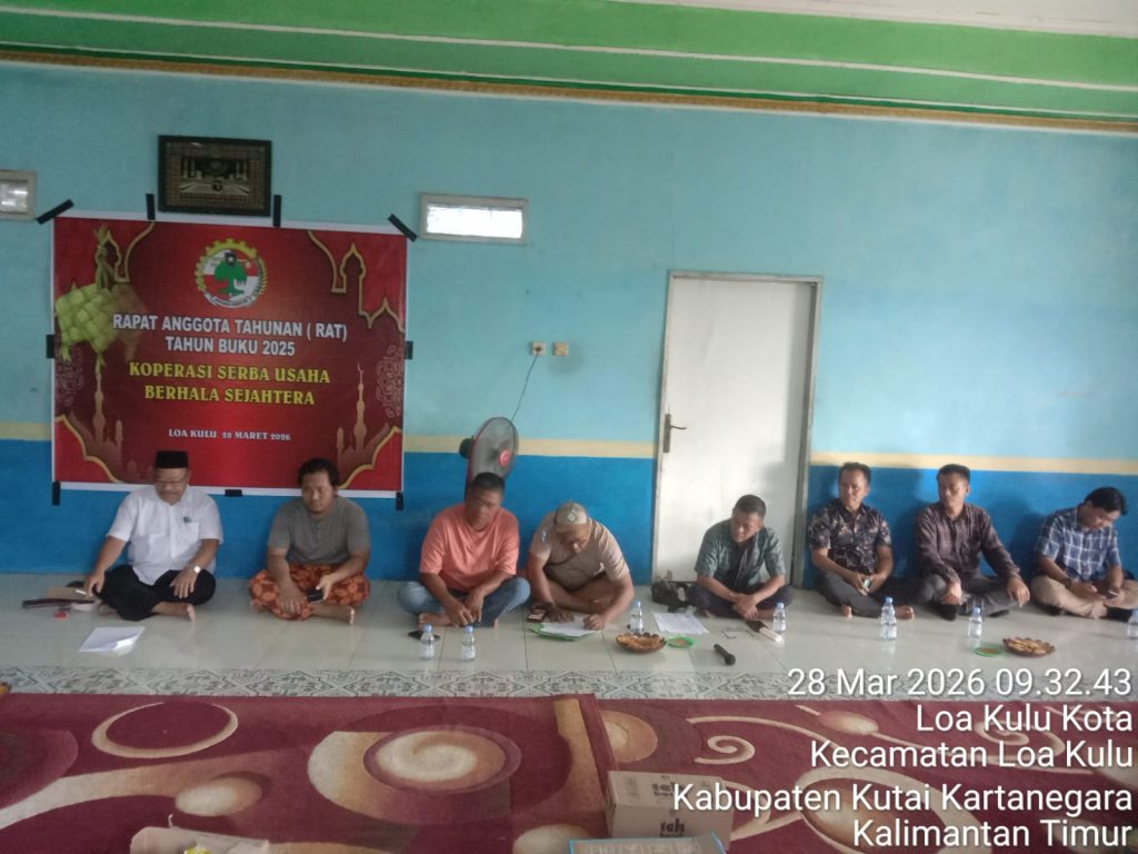 Loa Kulu, 28 Maret 2026 — Kepala Seksi Pemberdayaan Masyarakat dan Desa (Kasi PMD) Kecamatan Loa Kulu menghadiri kegiatan Rapat Anggota Tahunan (RAT) Koperasi Serba Usaha (KSU) Berhala Sejahtera yang diselenggarakan di wilayah Loa Kulu Kota pada Sabtu (28/3).