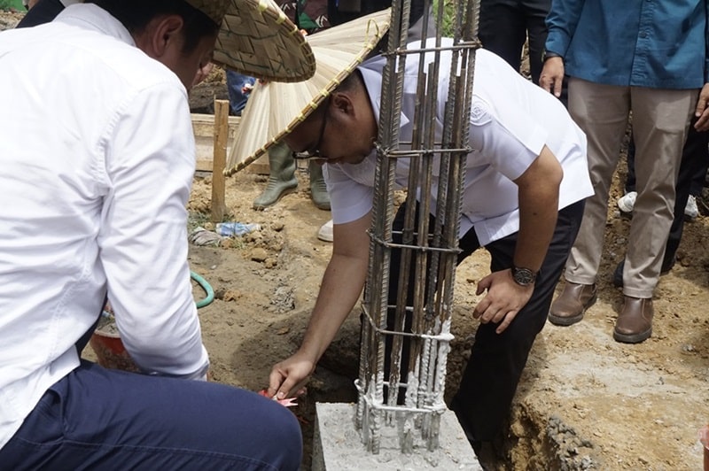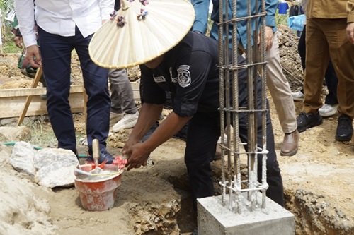 Setelah agenda pertama selesai, Bupati Kukar bersama rombongan dan Camat Loa Kulu bergeser menuju Kantor Desa Jembayan Tengah untuk melakukan peletakan batu pertama pembangunan kantor desa.
