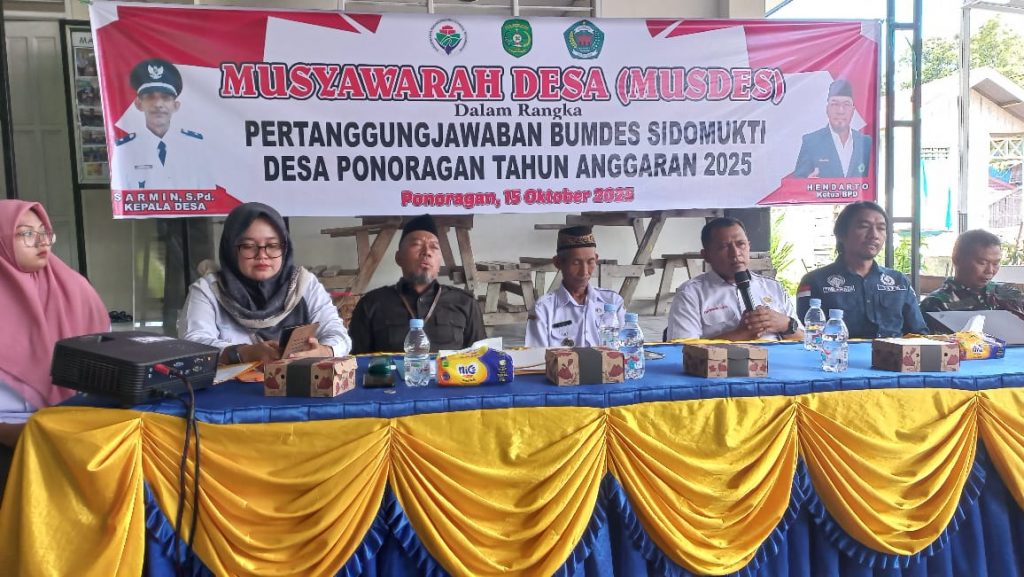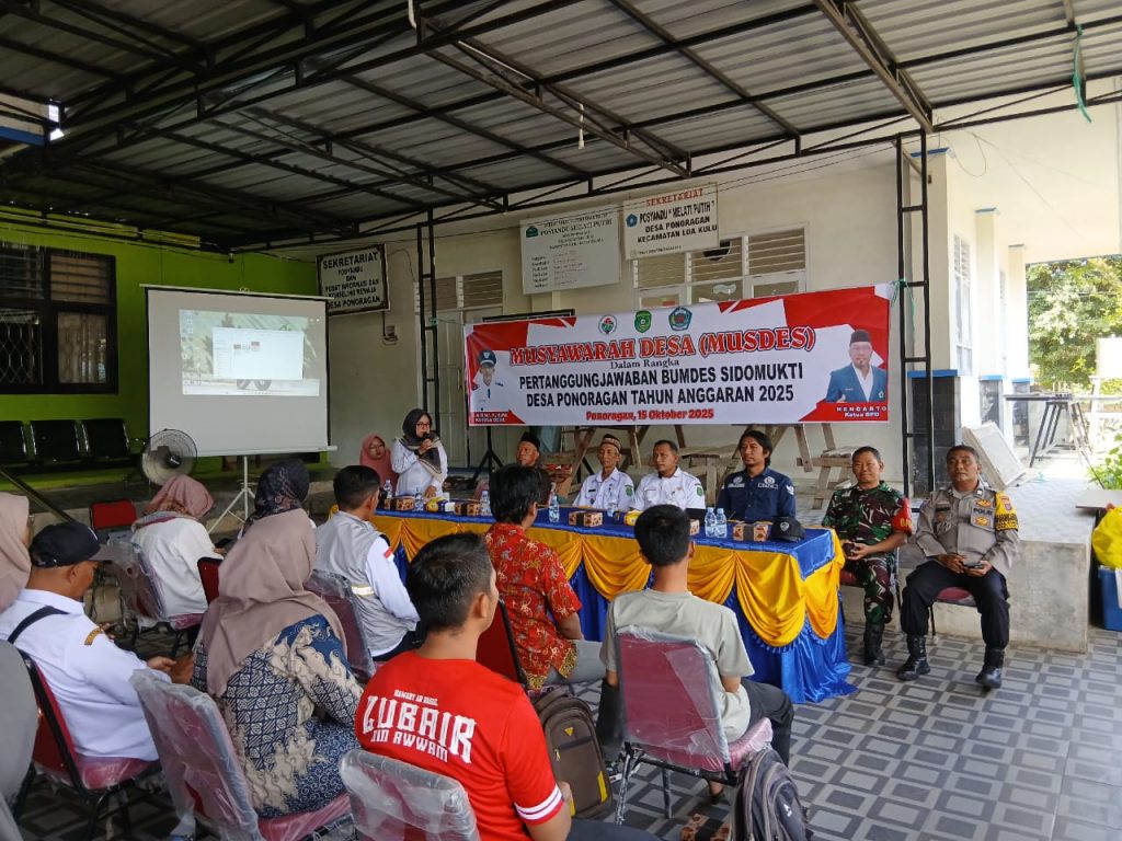 Loa Kulu — Pemerintah Desa Ponoragan menggelar kegiatan Musyawarah Desa dalam rangka pertanggungjawaban pengelolaan BUMDes Sidomukti Tahun Anggaran 2025. Kegiatan ini dilaksanakan di Aula Pertemuan Kantor Desa Ponoragan pada Rabu (15/10/2025).