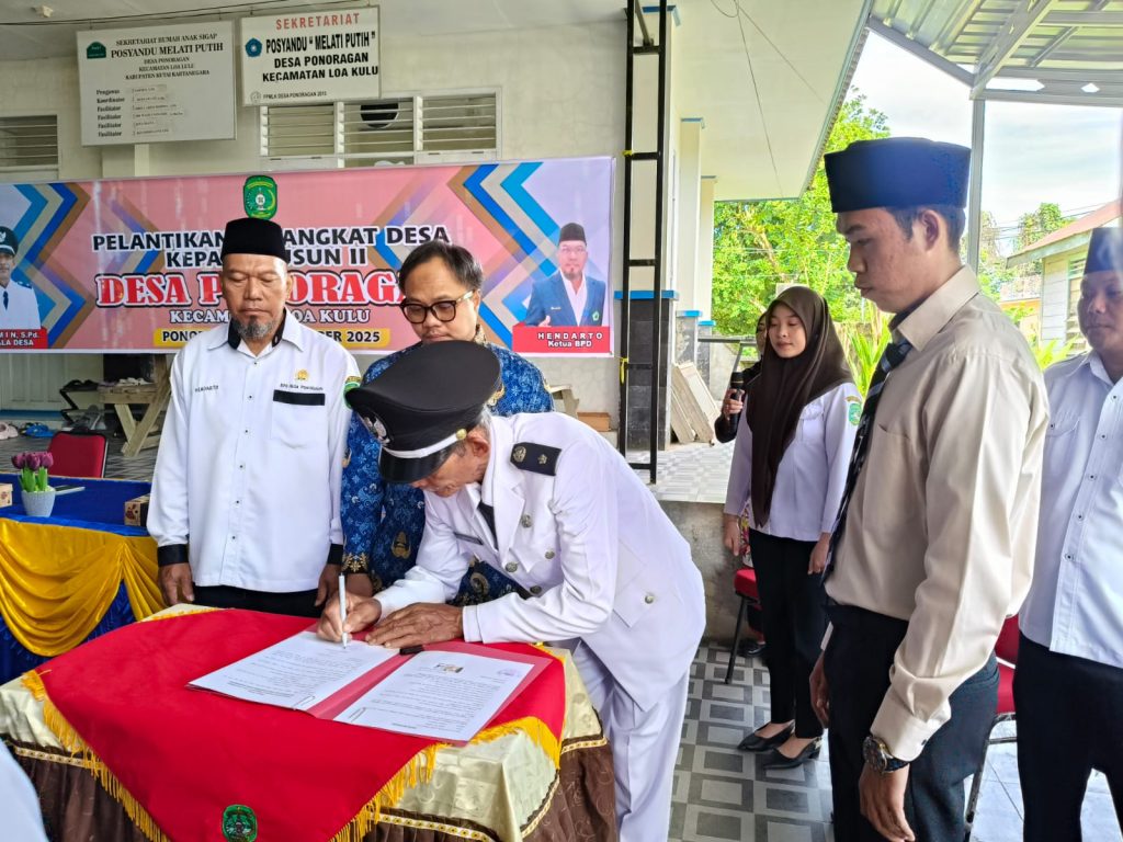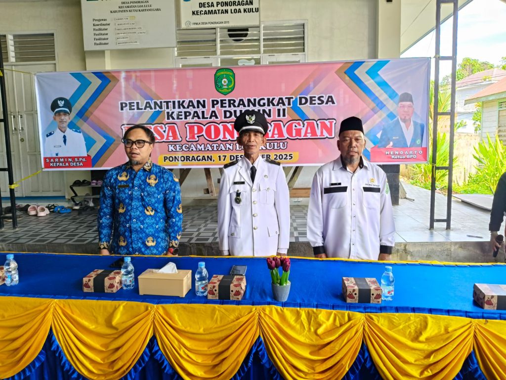 Pemerintah Desa Ponoragan, Kecamatan Loa Kulu, melaksanakan kegiatan pelantikan dan pengambilan sumpah/janji Perangkat Desa Kepala Dusun (Kadus) II Desa Ponoragan pada Rabu, 17 Desember 2025. Kegiatan ini dilaksanakan di halaman Kantor Desa Ponoragan dan berlangsung dengan tertib serta khidmat.