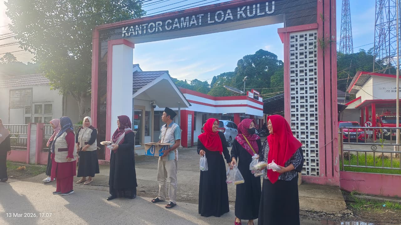 Loa Kulu — Pemerintah Kecamatan Kecamatan Loa Kulu berkolaborasi bersama Tim Penggerak PKK, Dasawisma, serta Unit Pengumpul Zakat (UPZ) kecamatan menggelar kegiatan pembagian takjil kepada masyarakat pada Jumat, 13 Maret 2026.