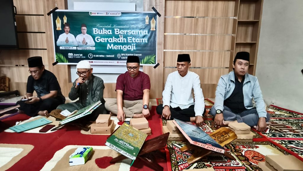 Loa Kulu — Pemerintah Kecamatan Kecamatan Loa Kulu melaksanakan kegiatan buka puasa bersama yang dirangkai dengan pelaksanaan GEMA (Gerakan Etam Mengaji) pada Jumat, 13 Maret 2026. Kegiatan tersebut diikuti oleh seluruh pegawai yang berada di lingkungan Kantor Camat Loa Kulu.