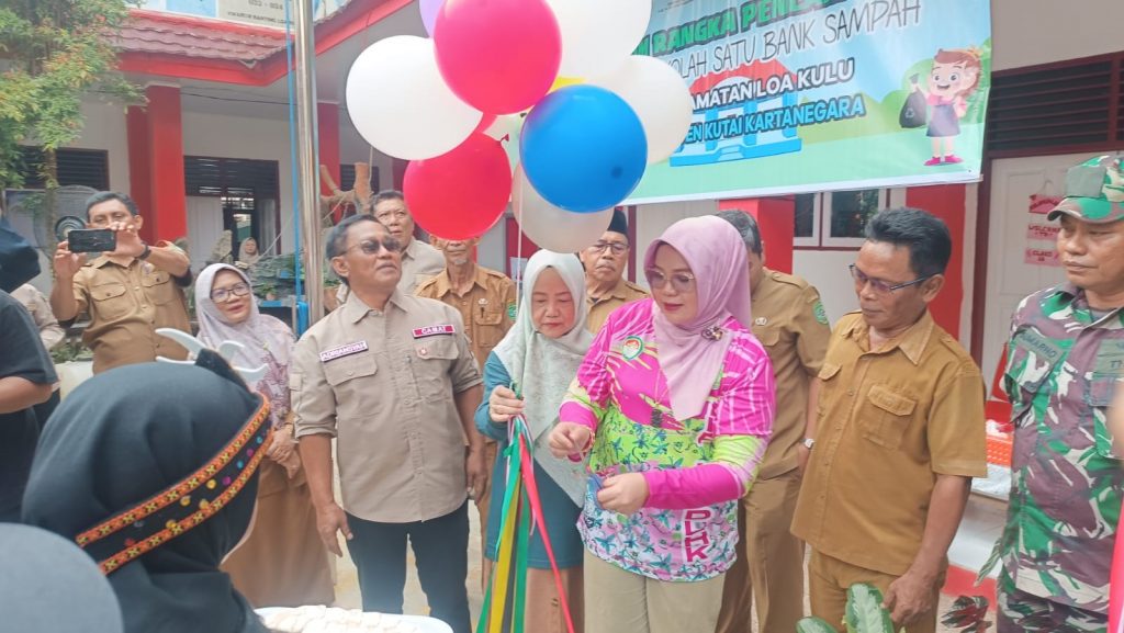Dilanjutkan ceremony pemotongan pita & pelepasan balon menandakan pencanangan satu sekolah satu bank sampah dan dilanjutkan peresemian bank sampah brilliant SDN 002 desa Loh Sumber kecamatan loa kulu dan pemberian buku tabungan secara simbolis kepada sekolah SD, SMP, SMA/SMK di kec loa kulu.