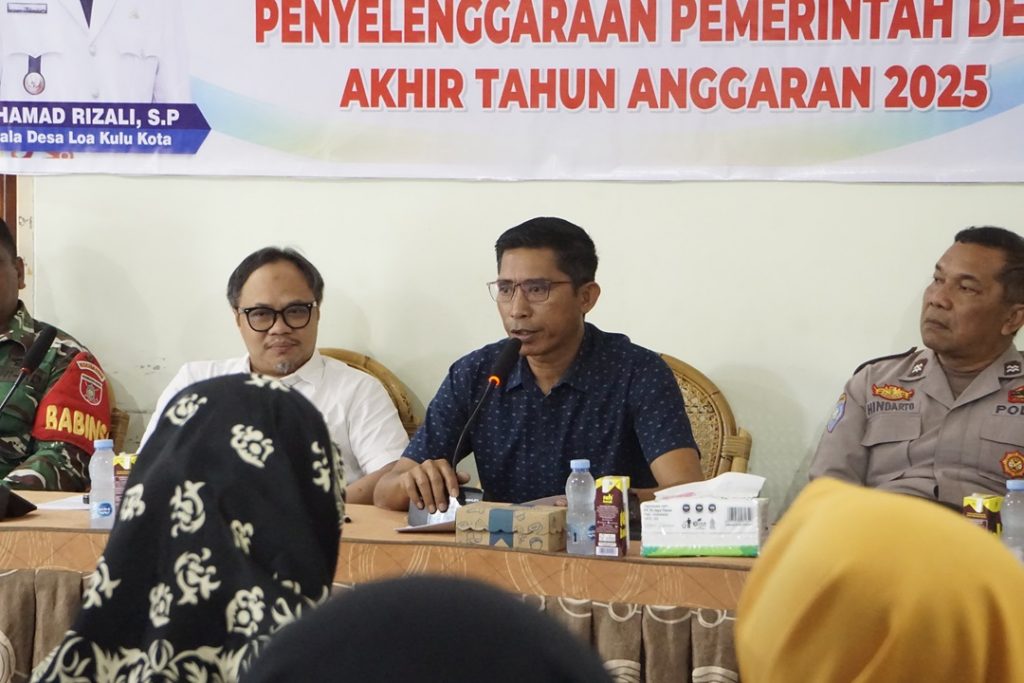 Loa Kulu Kota – Pelaksana Tugas (Plt.) Sekretaris Camat Loa Kulu, Khairuddinata., S.IP., M.Si menghadiri kegiatan Penyampaian Laporan Keterangan Penyelenggaraan Pemerintahan Desa (LKPPD) Tahun 2025 yang dilaksanakan di Aula Kantor Desa Loa Kulu Kota, Kecamatan Loa Kulu.