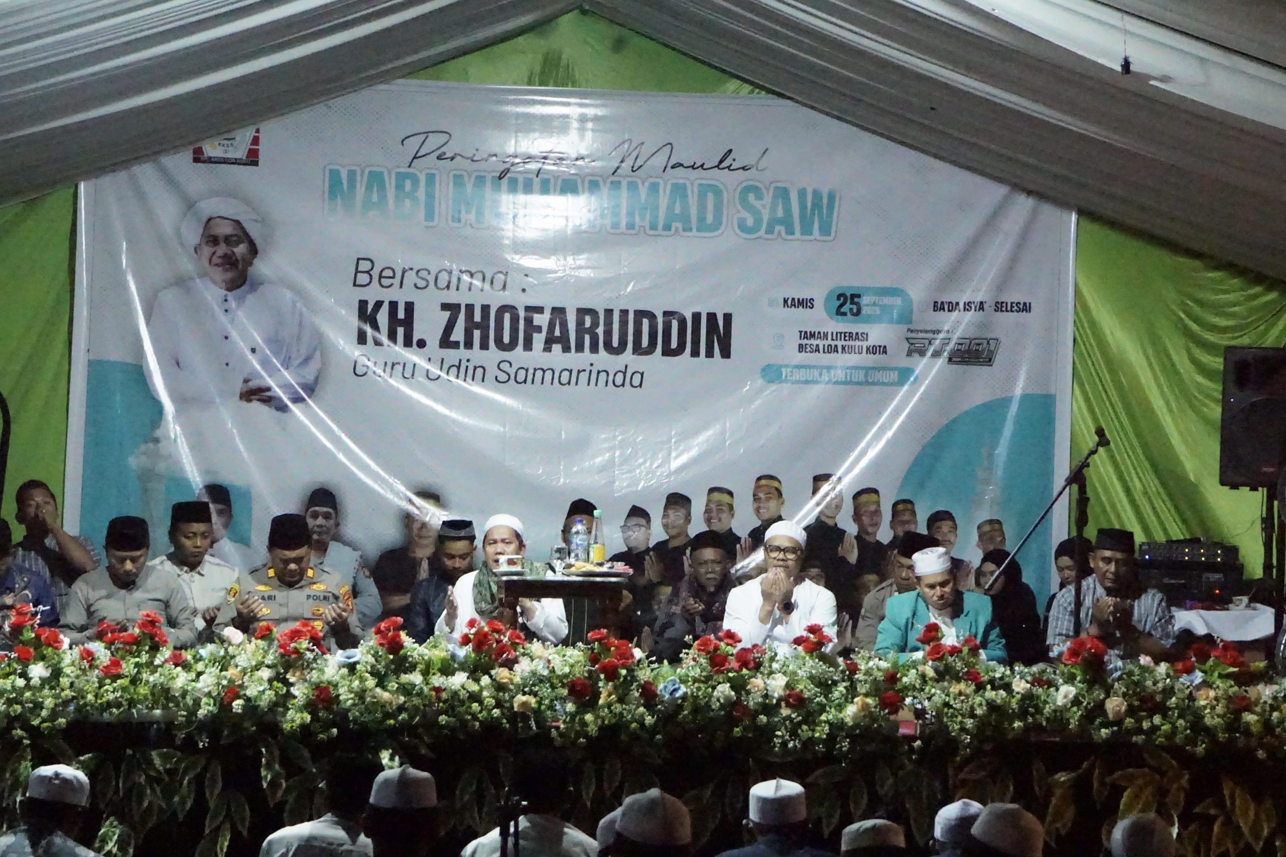 Loa Kulu – Warga RT 001 Desa Loa Kulu Kota sukses menyelenggarakan peringatan Maulid Nabi Muhammad SAW pada Kamis malam, 25 September 2025, bertempat di Taman Literasi Desa Loa Kulu Kota. Acara tersebut menghadirkan penceramah KH. Zhofaruddin, yang lebih dikenal dengan sebutan Guru Udin Samarinda, dan berlangsung meriah dengan antusiasme masyarakat yang memadati lokasi kegiatan.